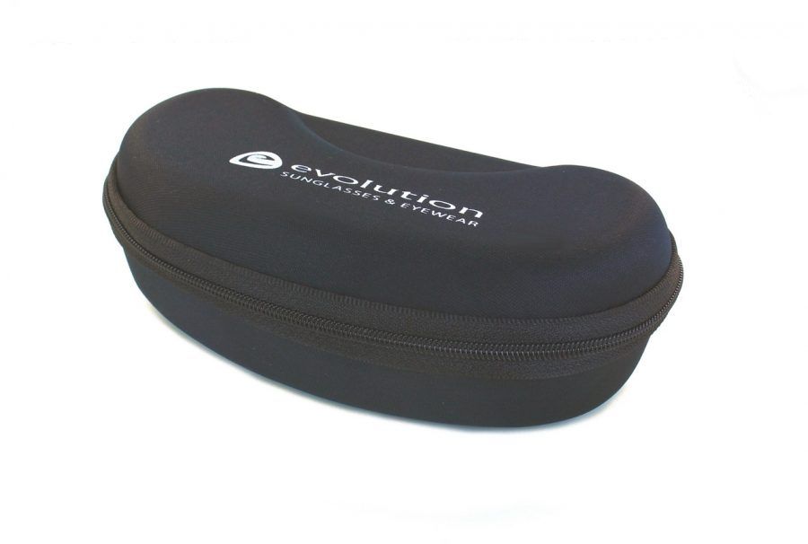 Twarde etui na okulary z logo Evolution zapinane na suwak – kolor czarny.
