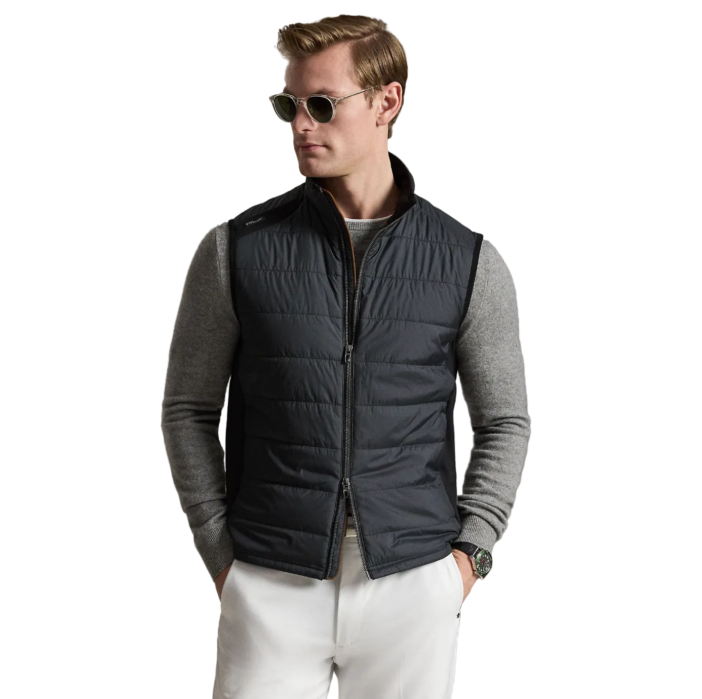 Pełna swoboda ruchów: Bez rękawów, kamizelka nie krępuje ruchów, co jest kluczowe dla pełnego i naturalnego zamachu golfowego.