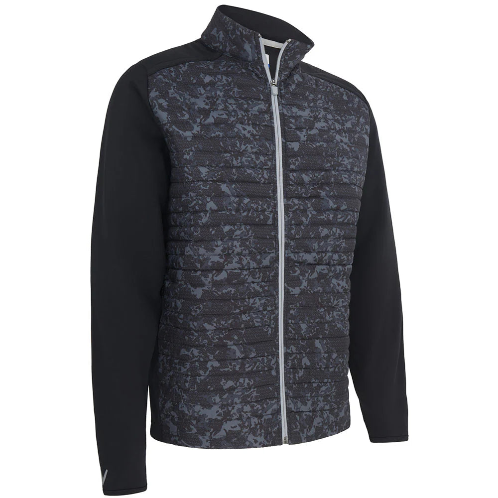 Kurtka Callaway Abstract Camo to produkt typu "statement piece" – odważny design połączony z bezkompromisową technologią. Wyrazisty, abstrakcyjny wzór kamuflażu w głębokim kolorze Caviar sprawia, że wyróżnisz się na polu golfowym i poza nim. To idealne rozwiązanie dla golfistów, którzy szukają nowoczesnej odzieży wierzchniej, łączącej izolację termiczną z pełną swobodą ruchów.